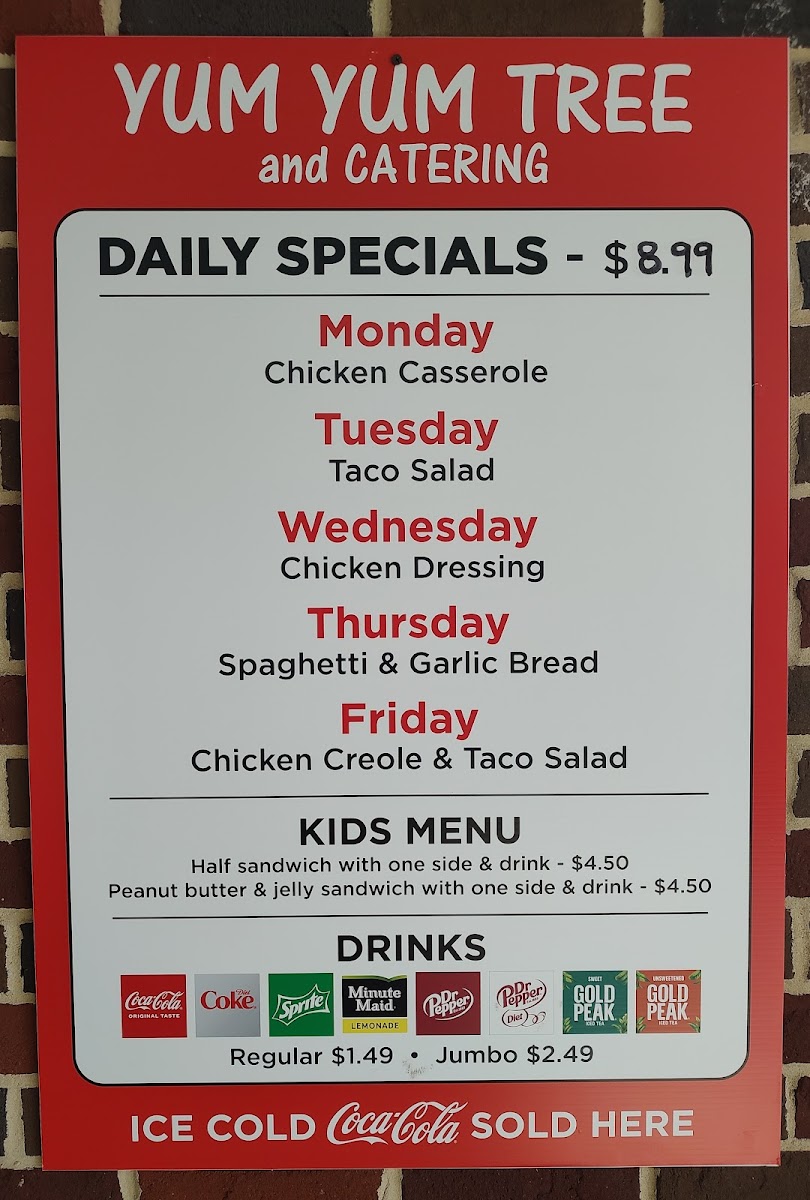 Introducing the menu at Yum Yum Tree and Catering, located at 212 N Broad St D, Albertville, AL, is a delightful experience for food lovers. Priced affordably with daily specials at just $8.99, the menu features an array of delectable options.